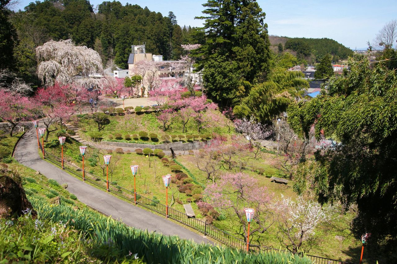 A plum festival takes place in the park at the height of the season each year. Visitors can sip tea served by the women proprietors of the local inns in tea ceremonies under the blossoming trees and watch performances of traditional Yutagawa Onsen Kagura dance. This year, the festival will be held on April 6 and 7. After strolling through the park and enjoying your tea, you may want to go down into the town for a refreshing bath in the hot springs before making your way home.