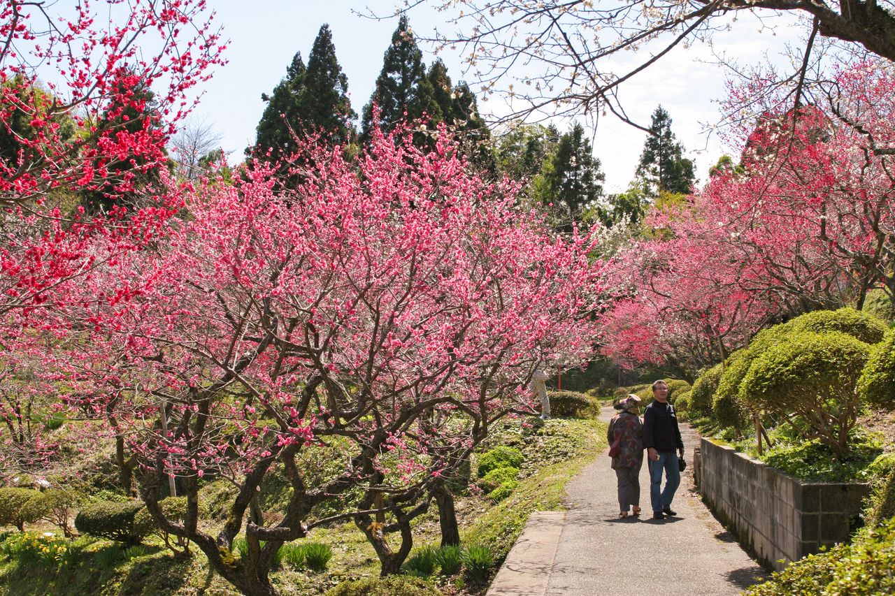 At the height of the plum blossom season, visitors flock to the area to enjoy the Umenosato Festival. This year the festival is scheduled to be held on April 7. Stalls line the road selling locally produced pickled plums and plum juice. One highlight of the festival is a plum-seed spitting contest.