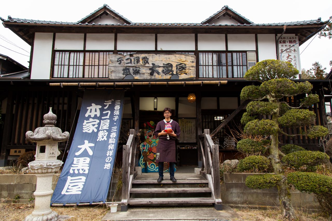 Hashimoto recalls that until his parents’ generation, hariko-making was a side business for farmers. “My parents were really hard workers, always busy out in the fields or making hariko. But since they were so occupied all the time, as a child I felt starved for attention and I had no desire to follow in their footsteps.” Hashimoto attended a fine arts university and became a high school art teacher. He enjoyed teaching, but had to leave the job after six years to take over the family trade when his father fell ill. After an apprenticeship period, he became head of Honke Daikokuya in 2010.