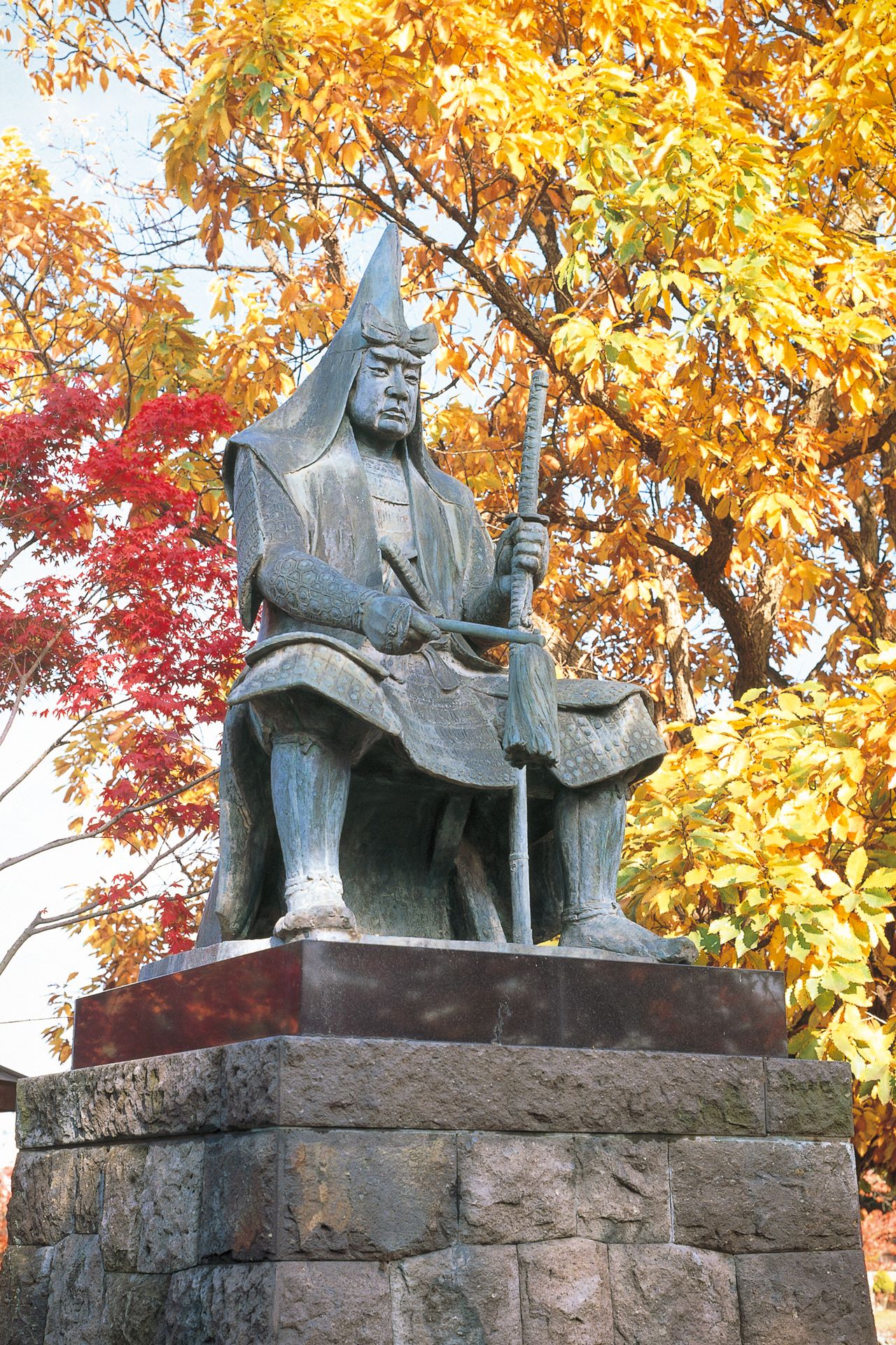 A bronze statue of Uesugi Kenshin on the grounds of the Uesugi Shrine. (Courtesy of Yamagata Prefecture)