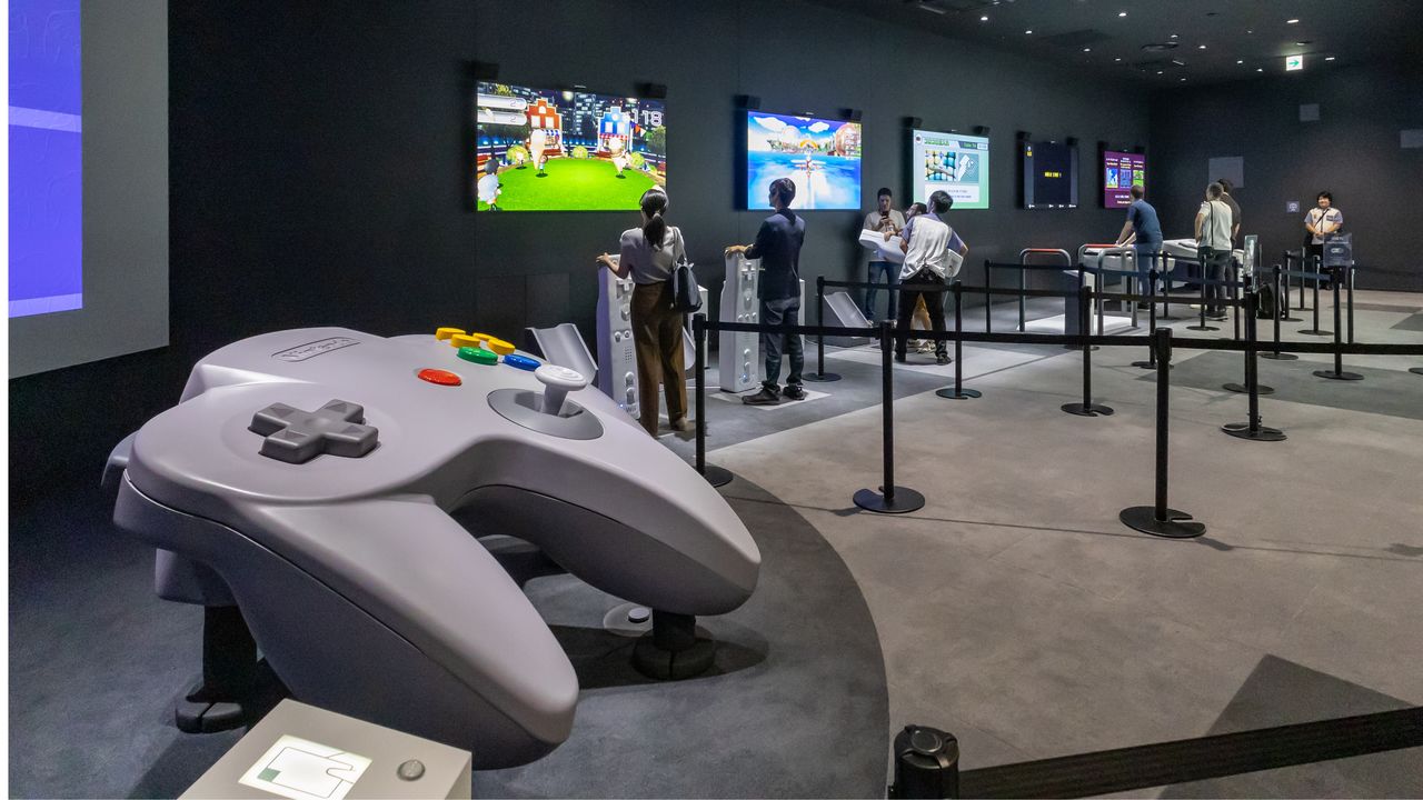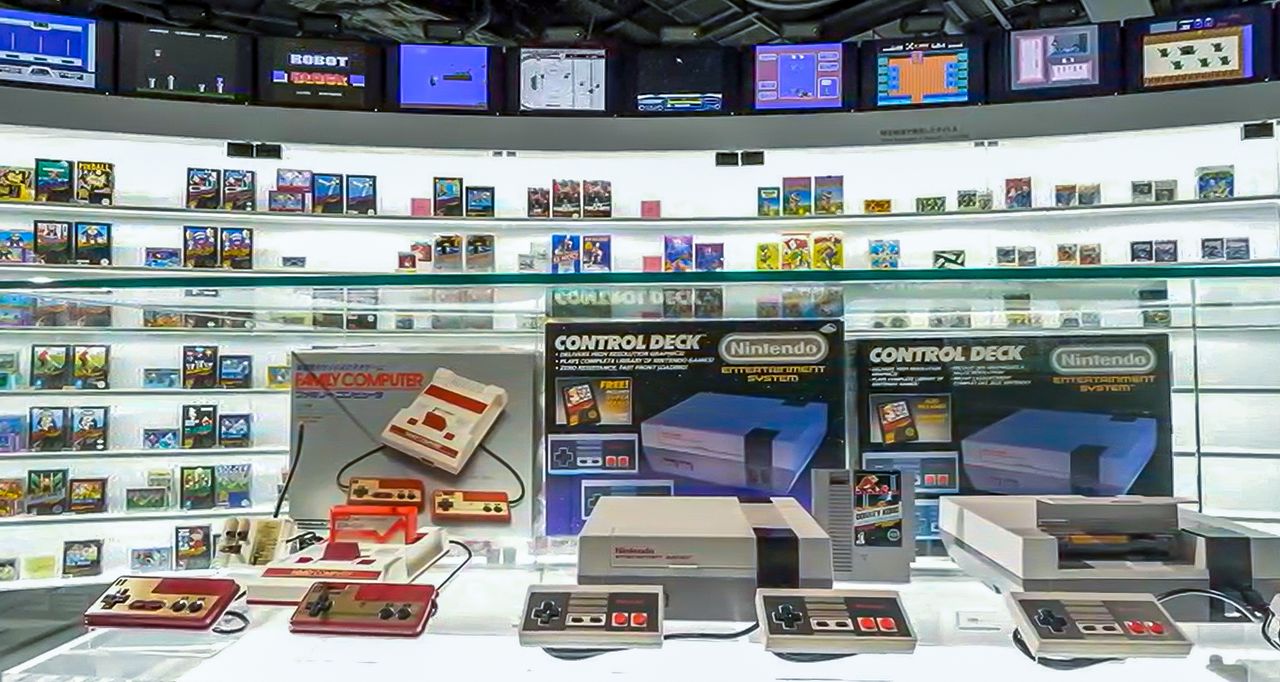 Under each controller are past games, including Japanese and international versions. Visitors can also listen to the music from the games.