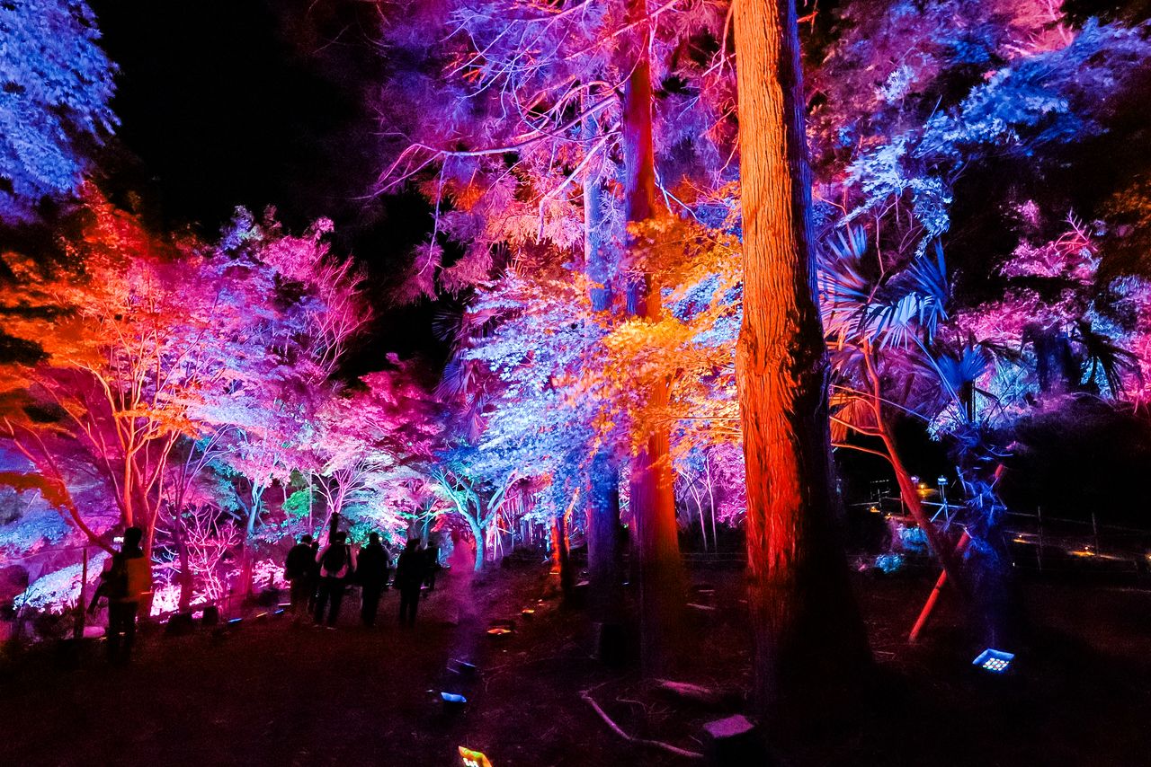 Trees constantly change color, reacting as people pass through the “Resonating Yōrō Valley and Forest.” (© Nippon.com)