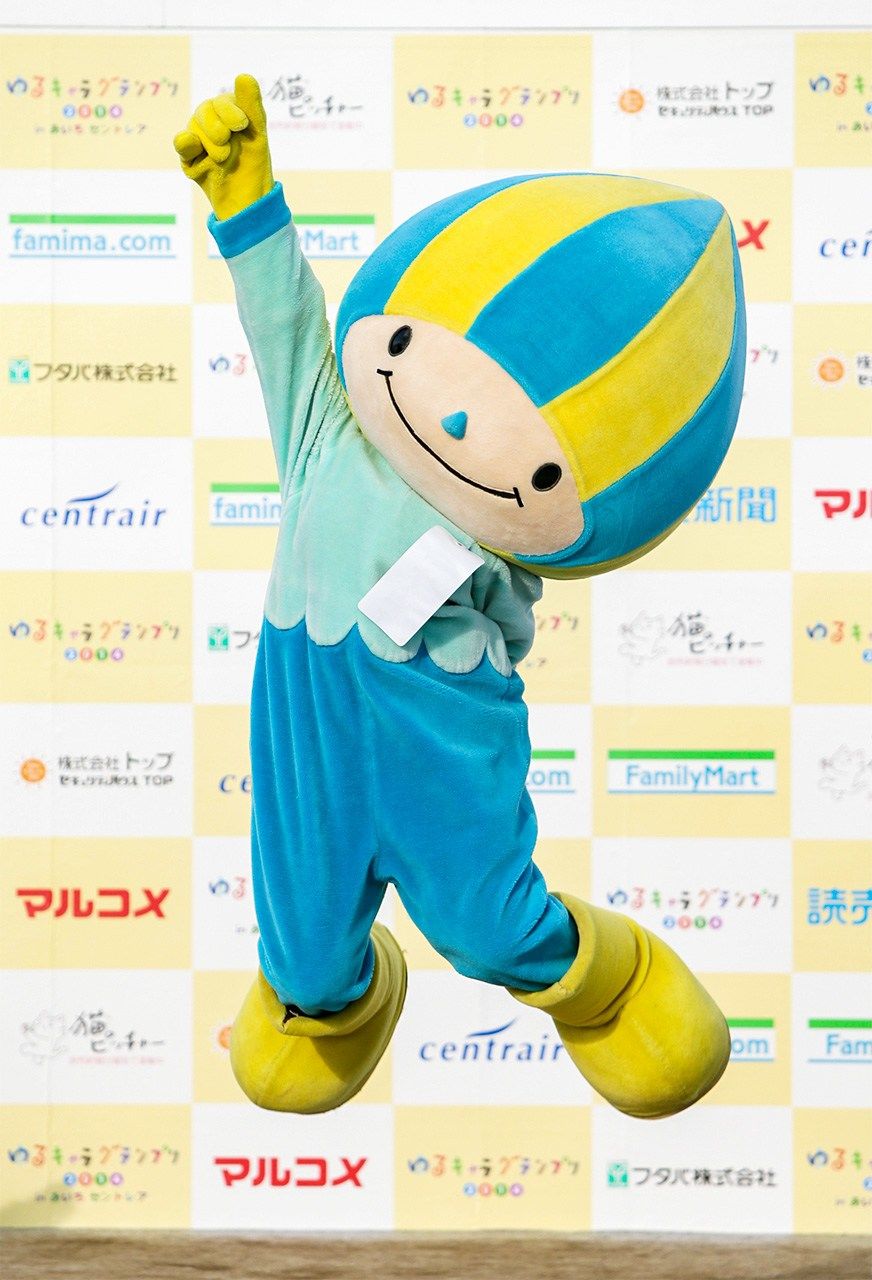 Minamo, Gifu’s official mascot, is a water fairy. The blue of his outfit represents the prefecture’s pristine waterways and the yellow its abundant sunshine. (© Jiji)