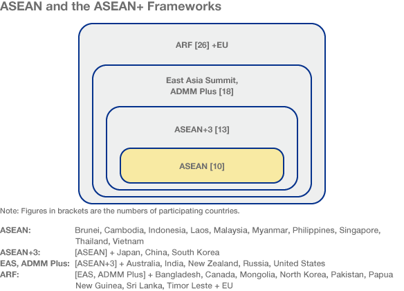Since then Japan and ASEAN, while at times disagreeing over economic issues, have strengthened their cooperative ties. In addition, these ties have served as a catalyst for the building of broader institutions centering on ASEAN. For example, the foreign ministers’ meetings between Japan and ASEAN served as the basis for the creation of the ASEAN Post-Ministerial Conferences (PMC) in the late 1970s. Early in the 1990s a proposal from Japan to have the PMC take up political and security issues led to the formation of the ASEAN Regional Forum (ARF). Late in the same decade, a Japanese suggestion for regular Japan-ASEAN summits became the direct impetus for the start of the ASEAN Plus Three meetings (the “three” being China, Japan, and South Korea). In 2008 Japan and ASEAN put into effect the ASEAN-Japan Comprehensive Economic Partnership Agreement, and the two sides are now aiming to extend the economic partnership framework across a wider region.
