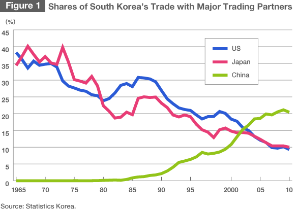 In other words, the decline in Japan’s economic importance for South Korea has been caused by circumstances in South Korea, not in Japan. In the past, as a divided country during the Cold War, South Korea could not find any major economic partners aside from Japan and the United States. But with the end of the Cold War, it became possible for it to trade with China and other countries of the former Eastern bloc. South Korea’s own economic development and the globalization of the world economy also contributed to a dramatic increase in the number of South Korea’s economic partners, which resulted in a substantial decline in its dependence on Japan and the United States.