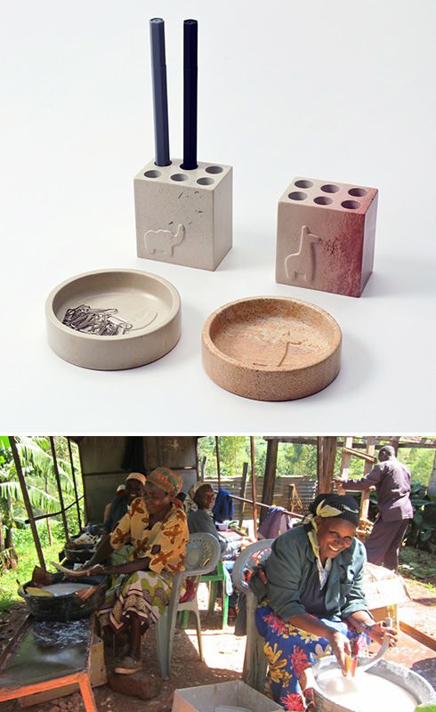 Soapstone craftworks from western Kenya sold in Muji stores in 2013 (above). The group of producers involved in this “One Village, One Product” project have given back to the community by using a portion of their profits to build a daycare center and library. (Photos courtesy of Ryōhin Keikaku.)
