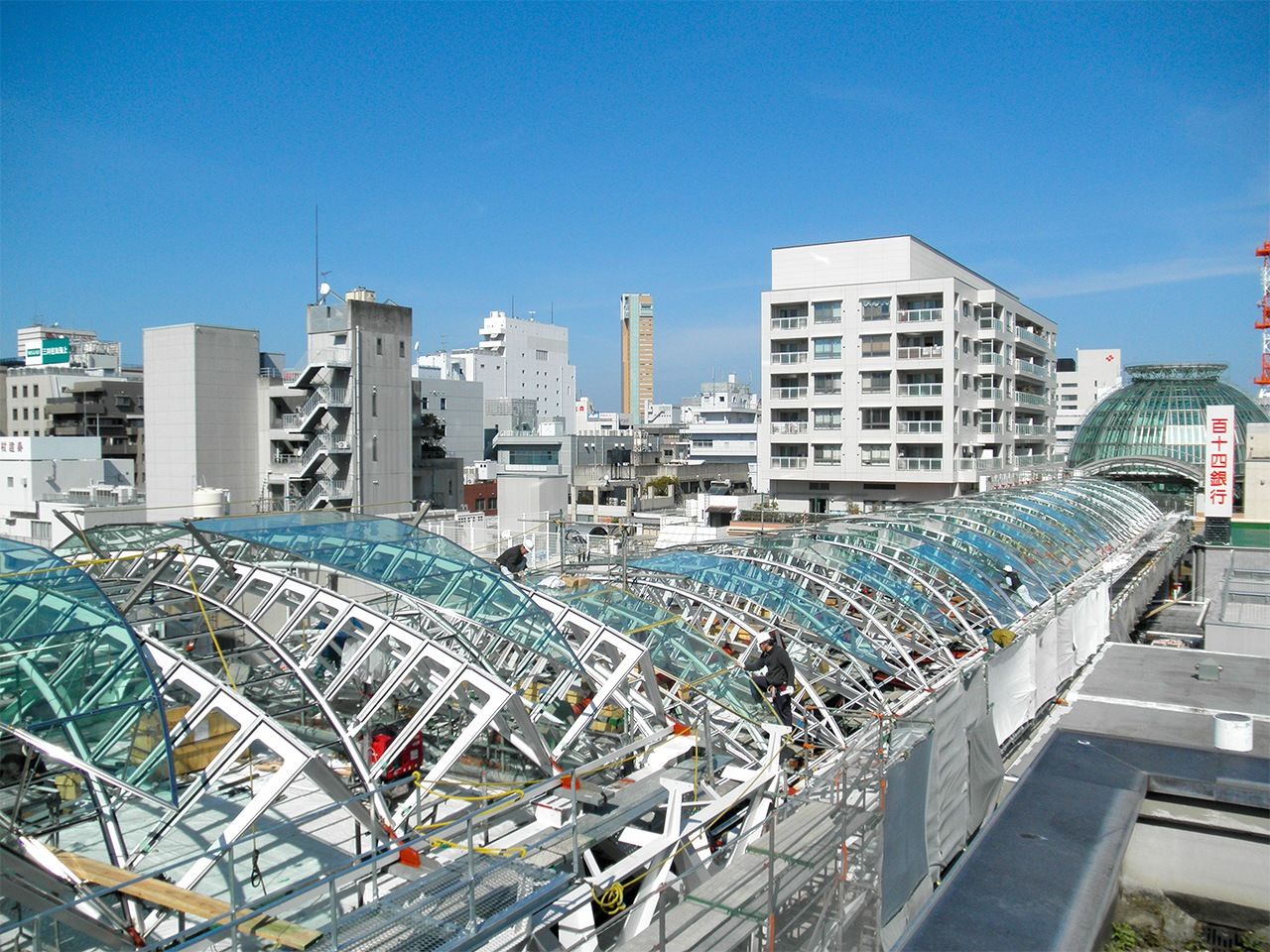 The Takamatsu Marugamemachi Shopping District Promotion Association first felt the crisis of business flight to the suburbs and set out to redevelop the shopping district at the time of the community’s 400th anniversary in 1988. They began searching for ways to keep the shopping district going for the next century. After many ups and downs, the redevelopment project for Block A was completed in December 2006. After that the dome went up over the old town center, Block C was reconstructed, and the new arched roof covered the arcade. Block G was completed in 2012. The redevelopment work in Blocks D through F is currently in progress.