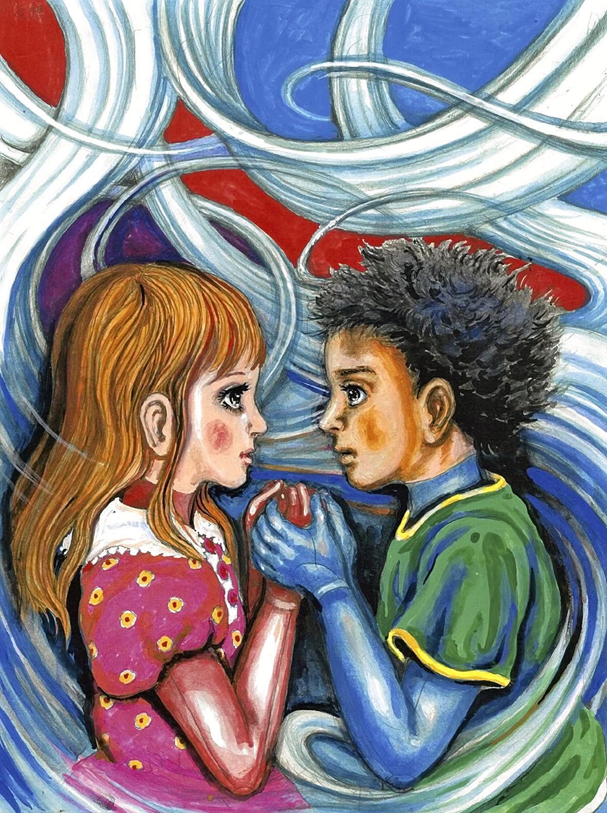 Umezu’s early drawings looked just like Tezuka’s. Then, around the time he became a junior high school student, he thought that if he wanted to become a professional, he would need to do more than imitate. He set about fundamentally reworking his style, influenced by children’s book artists like Takei Takeo and Hatsuyama Shigeru. His first works, which appeared in 1955—Forest Siblings, written with Mizutani Takeko, and Another World—demonstrated this newly developed style.
