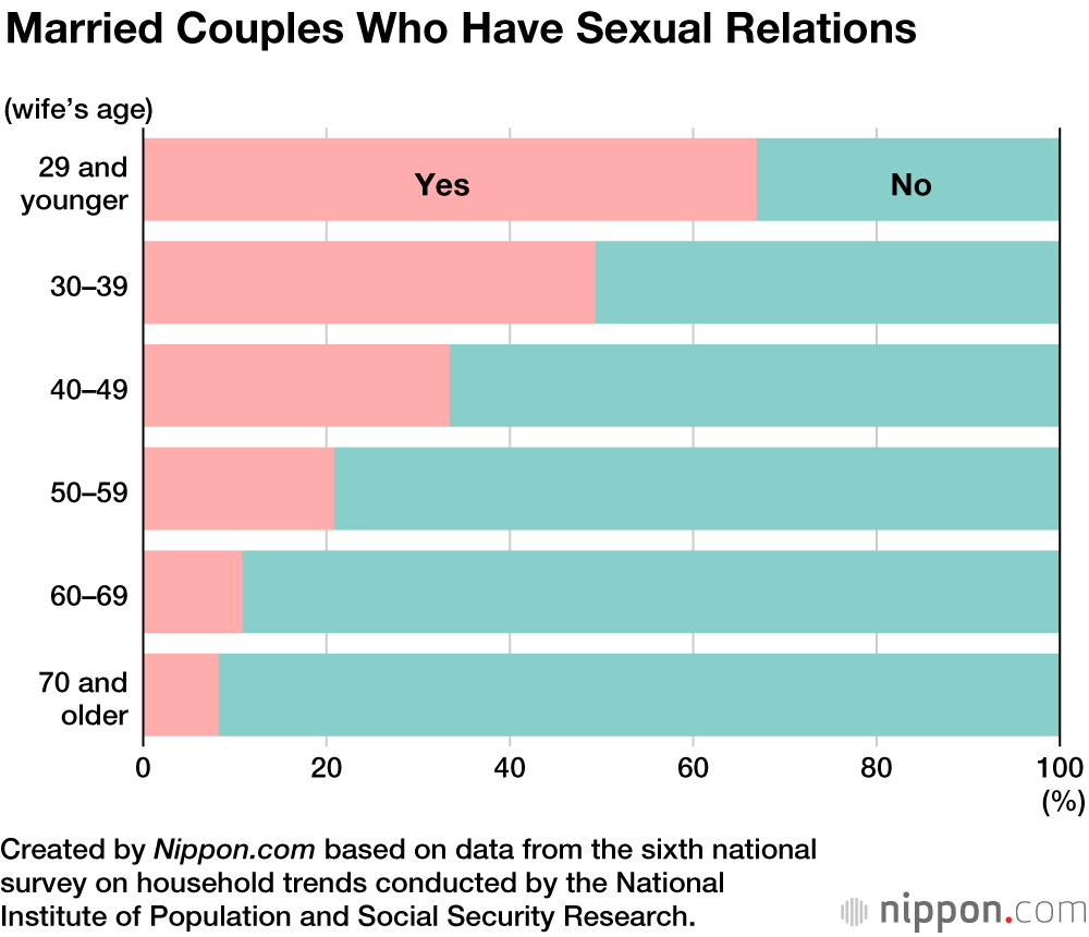 A national survey on household trends found that although around 90% of Japanese married couples eat dinner together, only a quarter of them regularly or sometimes have sexual relations. The image of relationships that emerges from the survey, conducted every five years by the National Institute of Population and Social Security Research, is that married couples are good friends but not lovers.