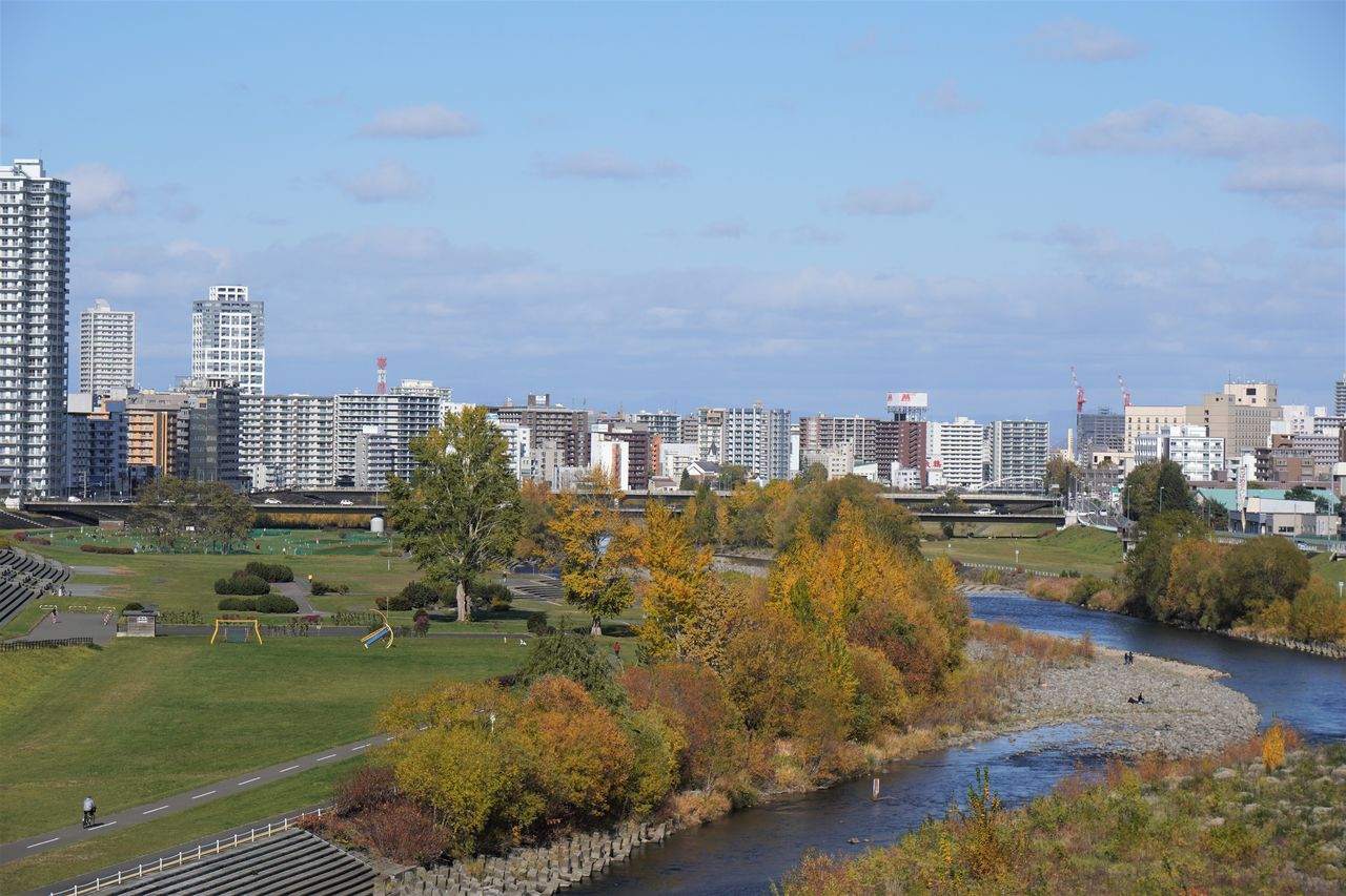 The center of Sapporo seen from across the gently flowing Toyohira River.