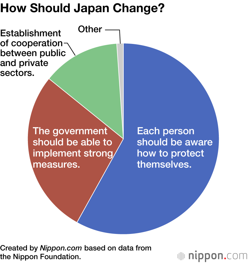 Regarding how Japan should change once the situation begins returning to normal, more than half answered that people should each become more aware how to protect themselves.