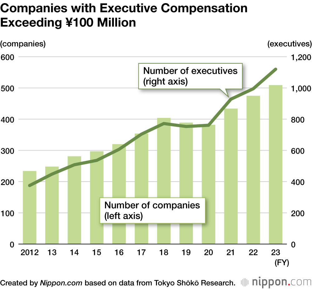 Number of Executives Earning Over ¥100 Million in Japan Tops 1,000