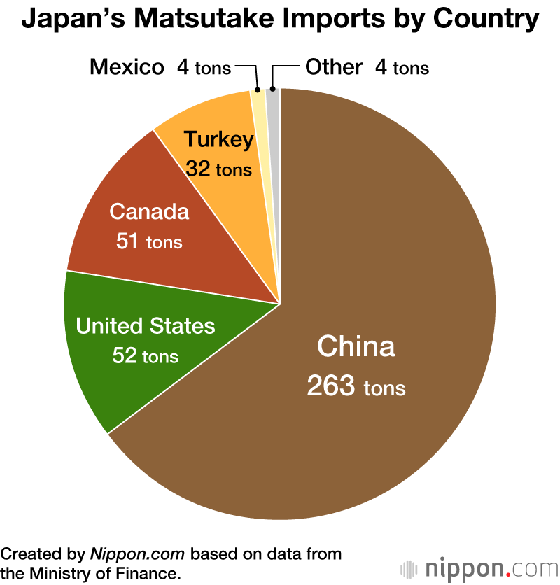 Currently, foreign-grown matsutake mushrooms account for over 90% of all the products on the market. China provides more than 60% of all these imports, but supplies from the United States and Canada have been increasing in recent years.