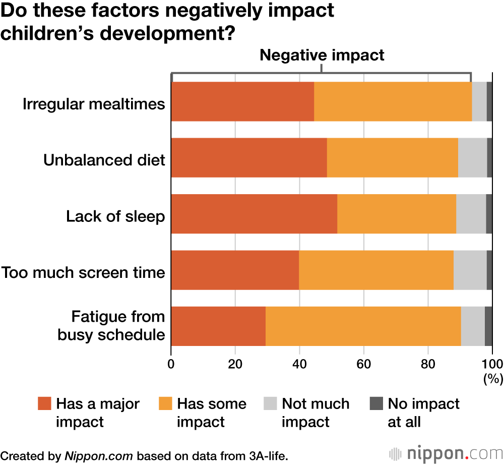 Among the doctors surveyed, more than 90% mentioned that unhealthy habits among children such as irregular mealtimes, unbalanced diet, and lack of sleep are having a negative impact on their development.