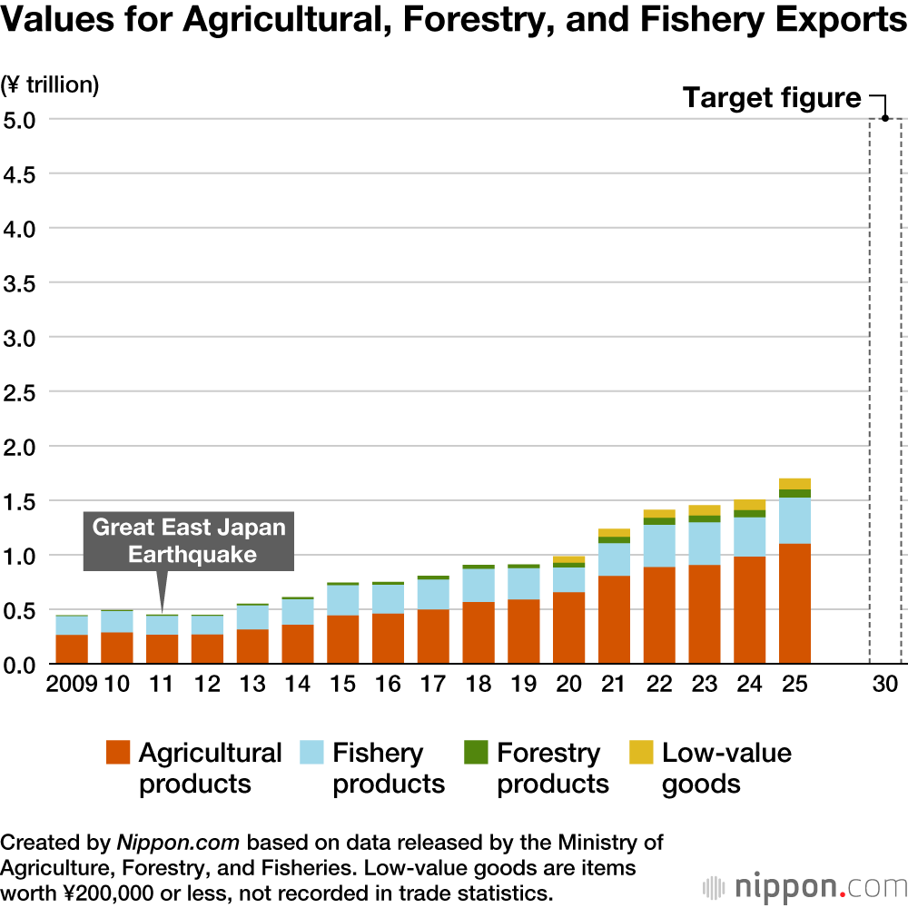 - Data on export of agricultural, forestry, and fishery products and foodstuffs (Japanese) from the Ministry of Agriculture, Forestry, and Fisheries