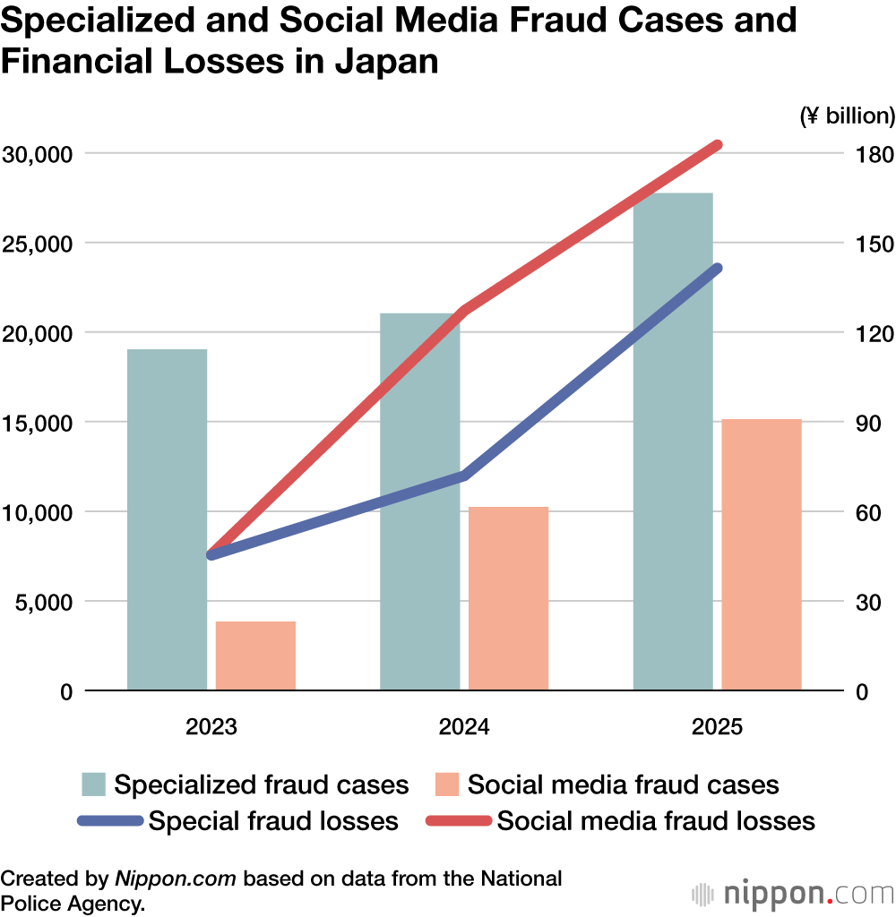 Total financial losses from fraud cases rose by 31.1% to ¥402.9 billion in 2025, with increased average losses per individual case.