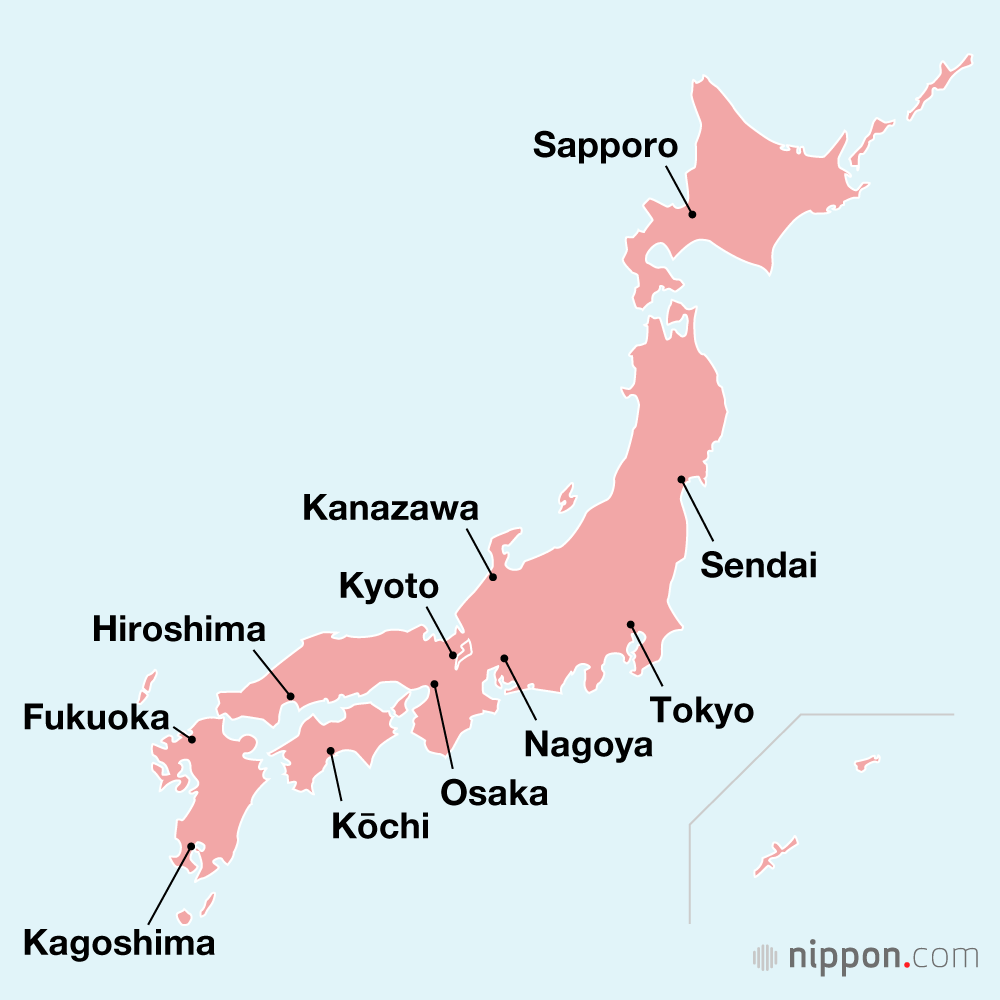 Created by Nippon.com based on data from the Japan Meteorological Agency for observed dates of first blooming and from the Japan Meteorological Corporation’s March 12 predictions for full blooming.