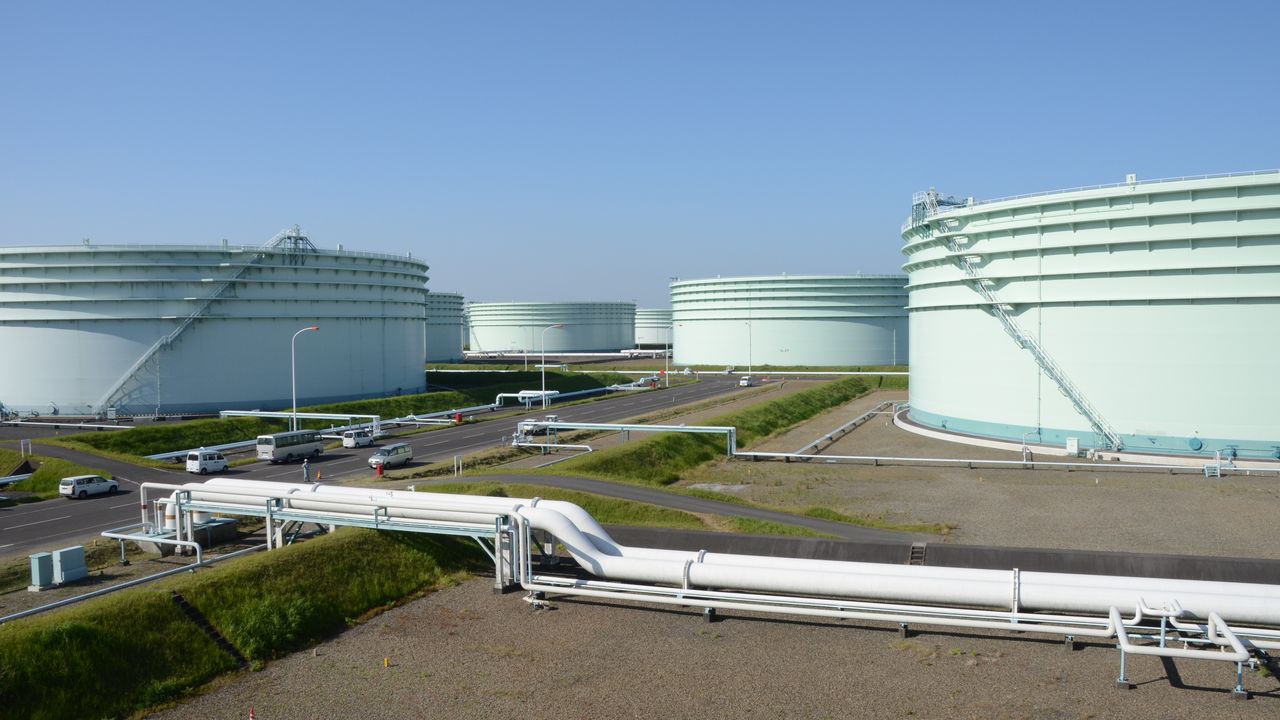 (Translated from Japanese. Banner photo: Oil storage tanks at Shibushi National Oil Storage Base in Kagoshima Prefecture. © Jiji.)