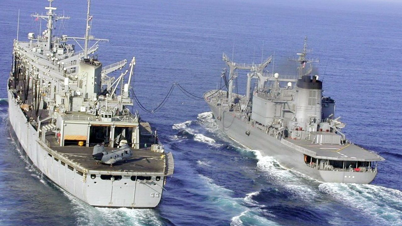 (Originally published in Japanese on March 19, 2026. Banner photo: A US Navy supply ship, at left, and the MSDF supply vessel Hamana transfer fuel in the Arabian Sea during antiterror operations in December 2001. Provided by Maritime Self-Defense Force; © Jiji. )
