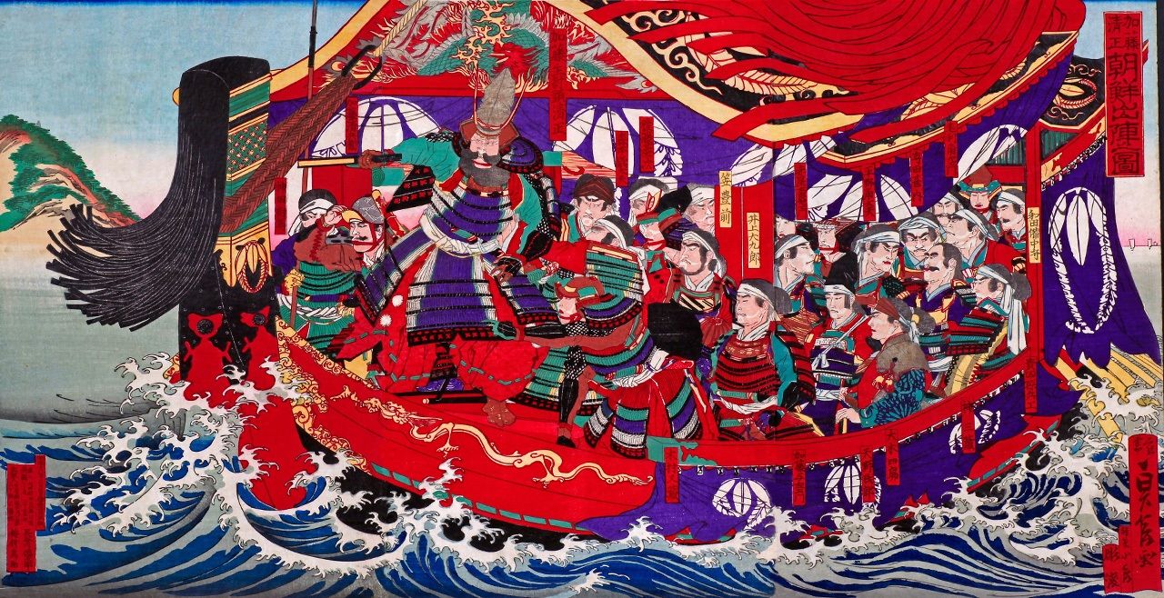 The daimyō Katō Kiyomasa depicted traveling to Korea as part of the military campaigns. (© Aflo)