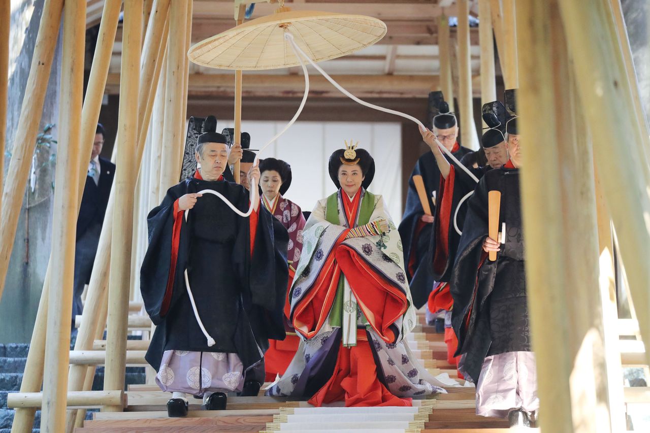 Empress Masako formally reporting the completion of enthronement ceremonies at Ise Shrine on November 23, 2019. (© Jiji; pool photo)
