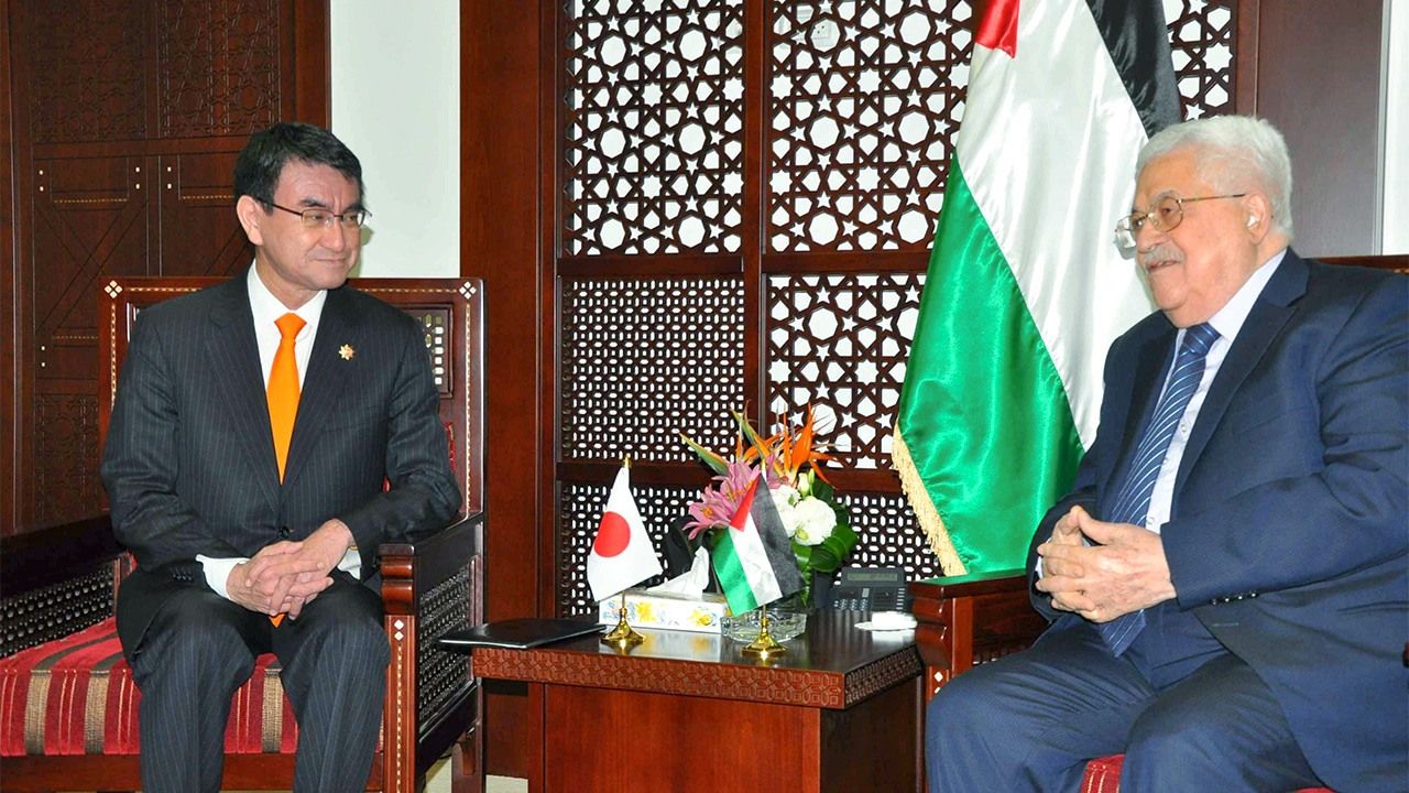 (Originally published in Japanese on December 17, 2018. Banner photo: Foreign minister Kōno Tarō in talks with Mahmoud Abbas, president of the Palestinian National Authority, in the Palestinian city of Ramallah, December 25, 2017. © Jiji.)
