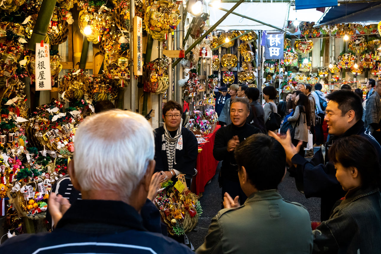 Tori no Ichi are famous for the spirited clapping from kumade vendors.