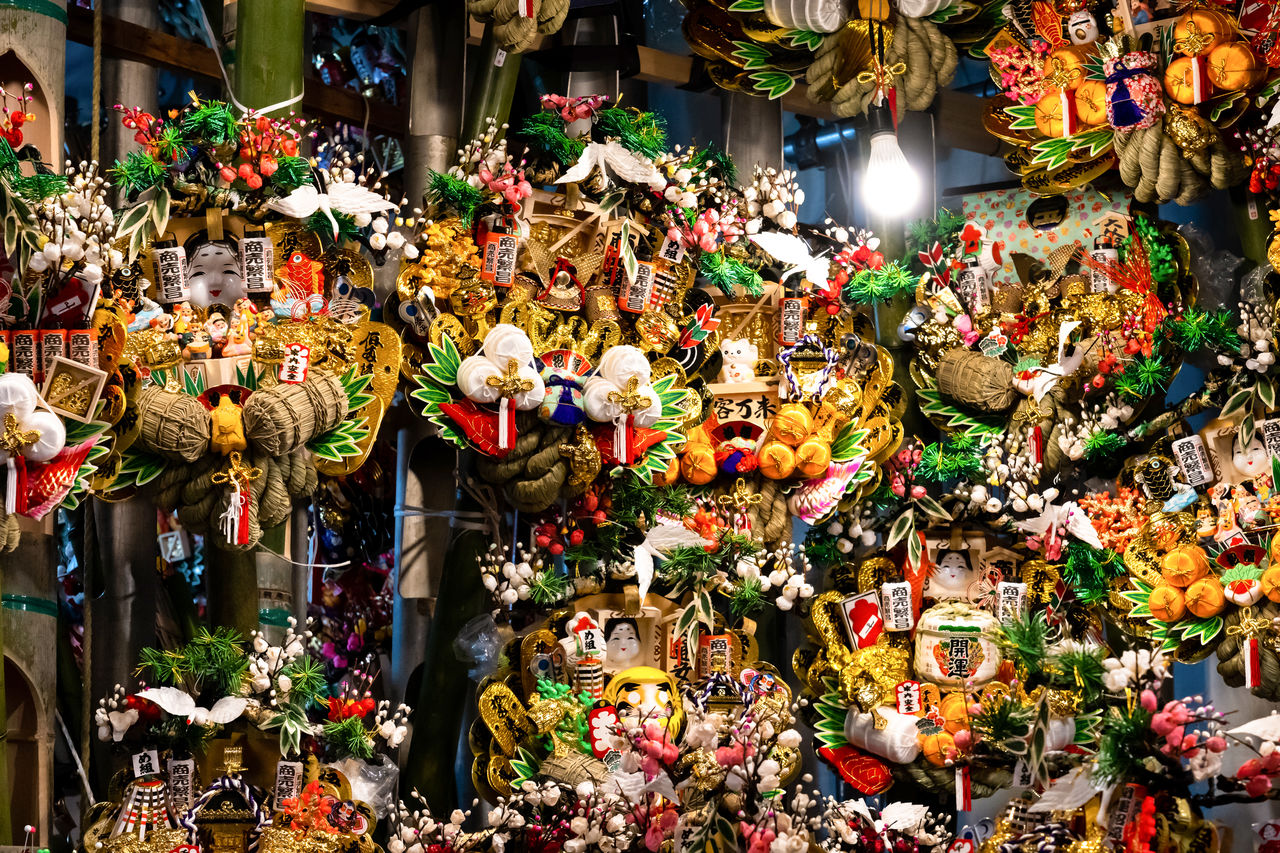 Ōtori Shrine’s Tori no Ichi is one of the largest and busiest, with rows of stalls stretching out of the shrine grounds to line the surrounding streets of Asakusa, Tokyo.