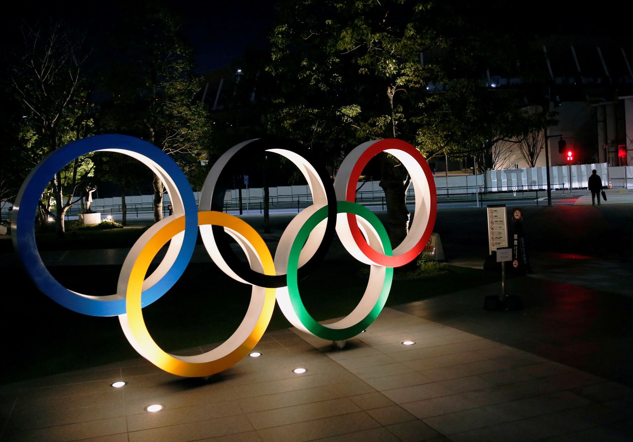 FILE PHOTO: The Olympic rings are illuminated in front of the National Stadium in Tokyo, Japan January 22, 2021. REUTERS/Kim Kyung-Hoon/File Photo