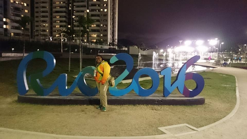 Claire Dawn-Marie Gittens poses with a Rio Olympics signage in Rio de Janeiro, Brazil in 2016. Picture taken in 2016. Claire Dawn-Marie Gittens/Handout via REUTERS