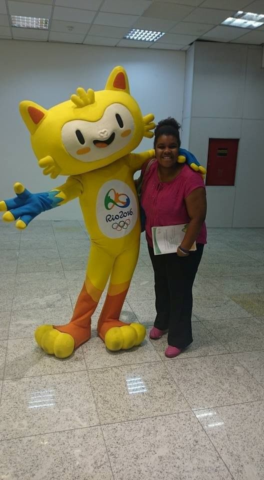 Claire Dawn-Marie Gittens poses with a Rio Olympics mascot in Rio de Janeiro, Brazil in 2016. Picture taken in 2016. Claire Dawn-Marie Gittens/Handout via REUTERS