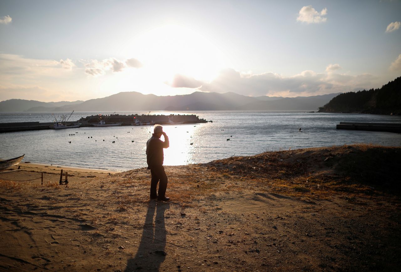 Yoshihito Sasaki, 70, who lost his wife, Mikiko, and his younger son, Jinya, in the March 11, 2011, earthquake and tsunami, walks along the coast near his home in Rikuzentakata, Iwate Prefecture, Japan, February 26, 2021. Picture taken February 26, 2021. REUTERS/Issei Kato