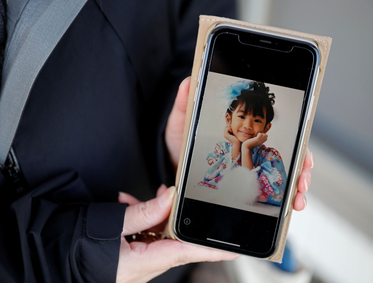 Mika Sato, 46, who lost her oldest daughter Airi in the March 11, 2011 earthquake and tsunami, shows a photo of Airi taken using her smartphone in August 2010 in Ishinomaki, Miyagi prefecture, Japan March 1, 2021. Picture taken March 1, 2021. REUTERS/Issei Kato NO RESALES. NO ARCHIVES.