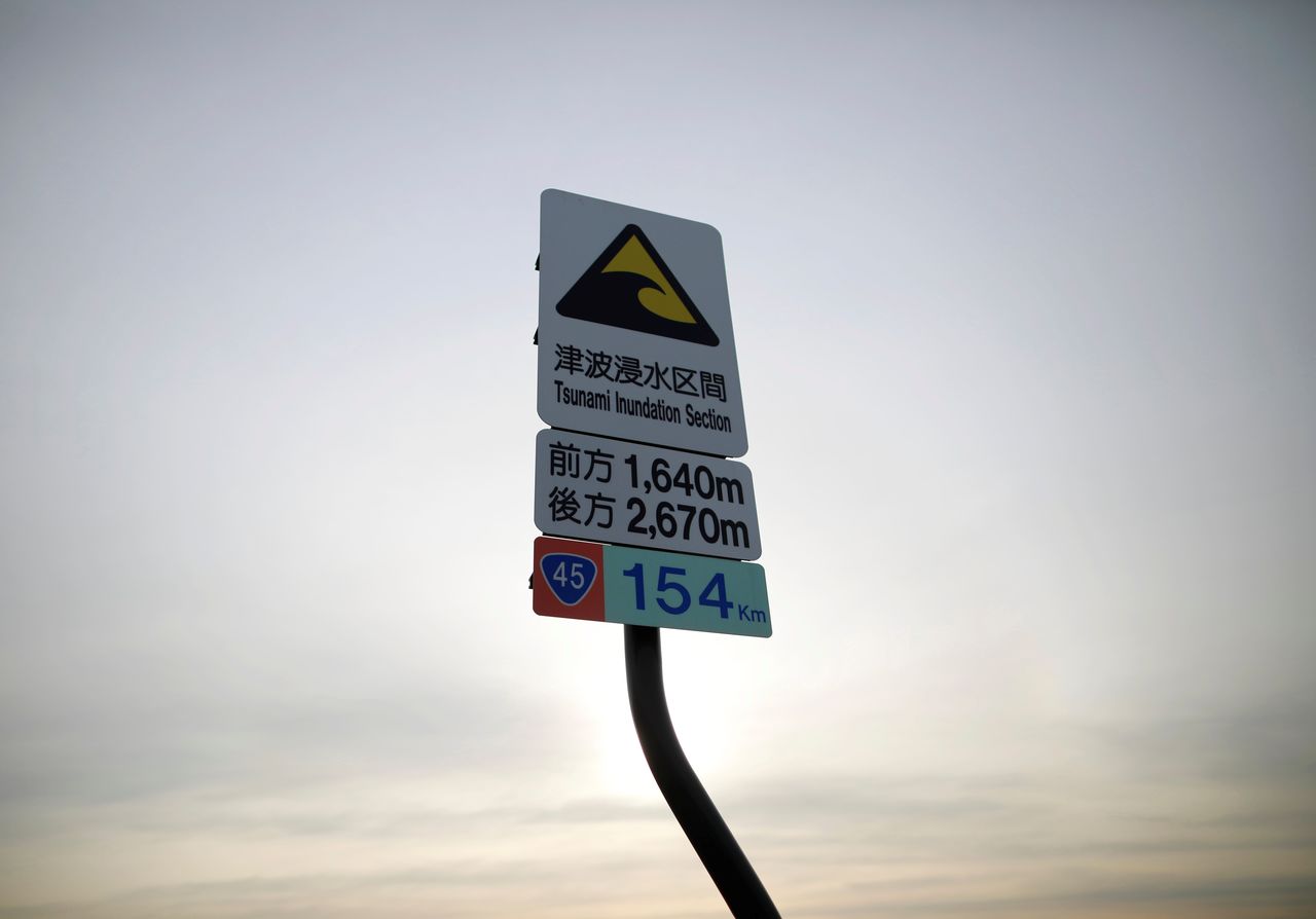 A sign board designating a tsunami inundation section is seen in Rikuzentakata, Iwate Prefecture, northern Japan March 1, 2021, ahead of the 10th anniversary of the 2011 earthquake and tsunami disaster. Picture taken March 1, 2021. REUTERS/Issei Kato