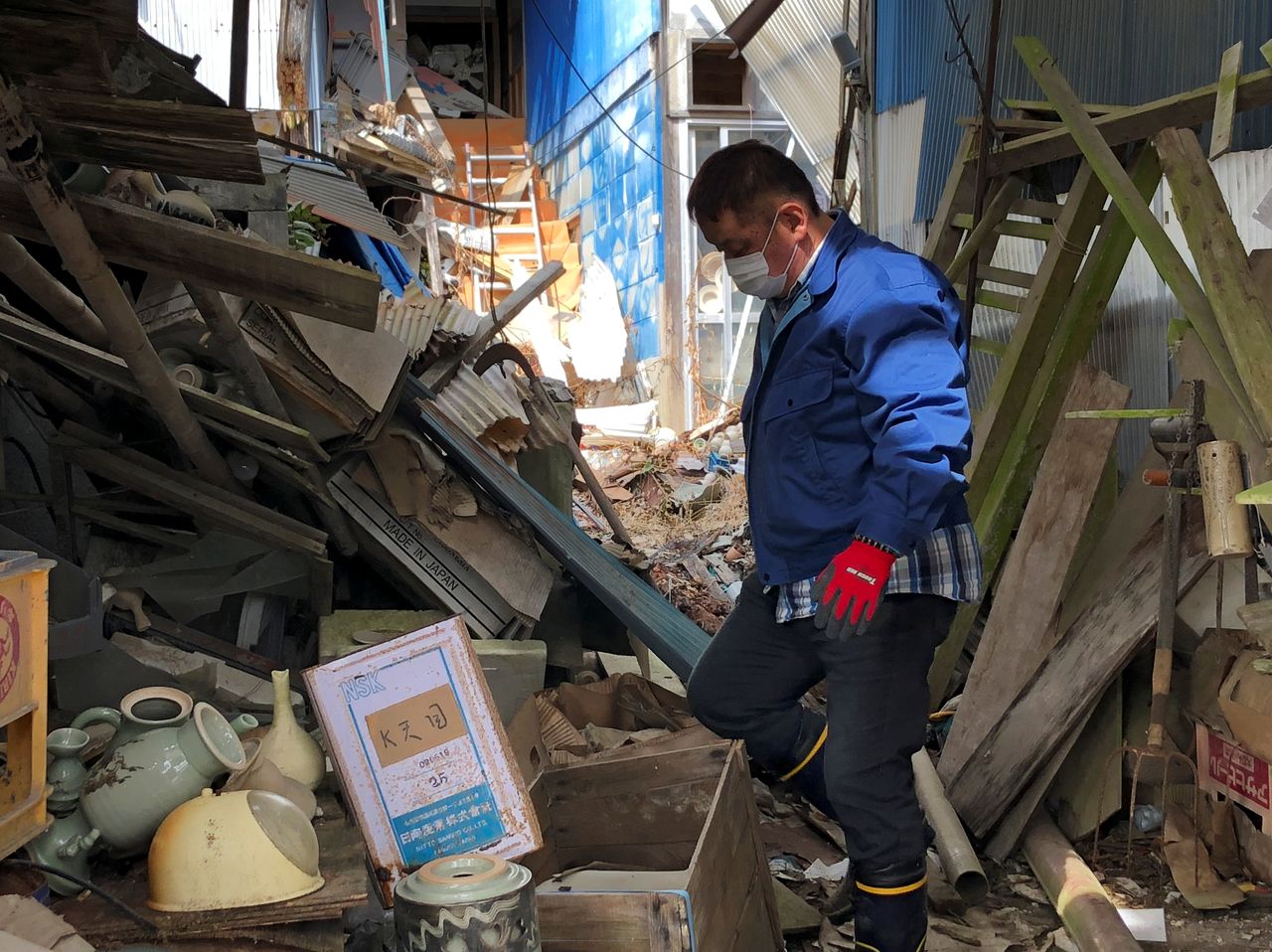 Clinging to a wall as the room filled with choking dust, Onoda watched stunned as his two-tonne kiln began to move across the floor.