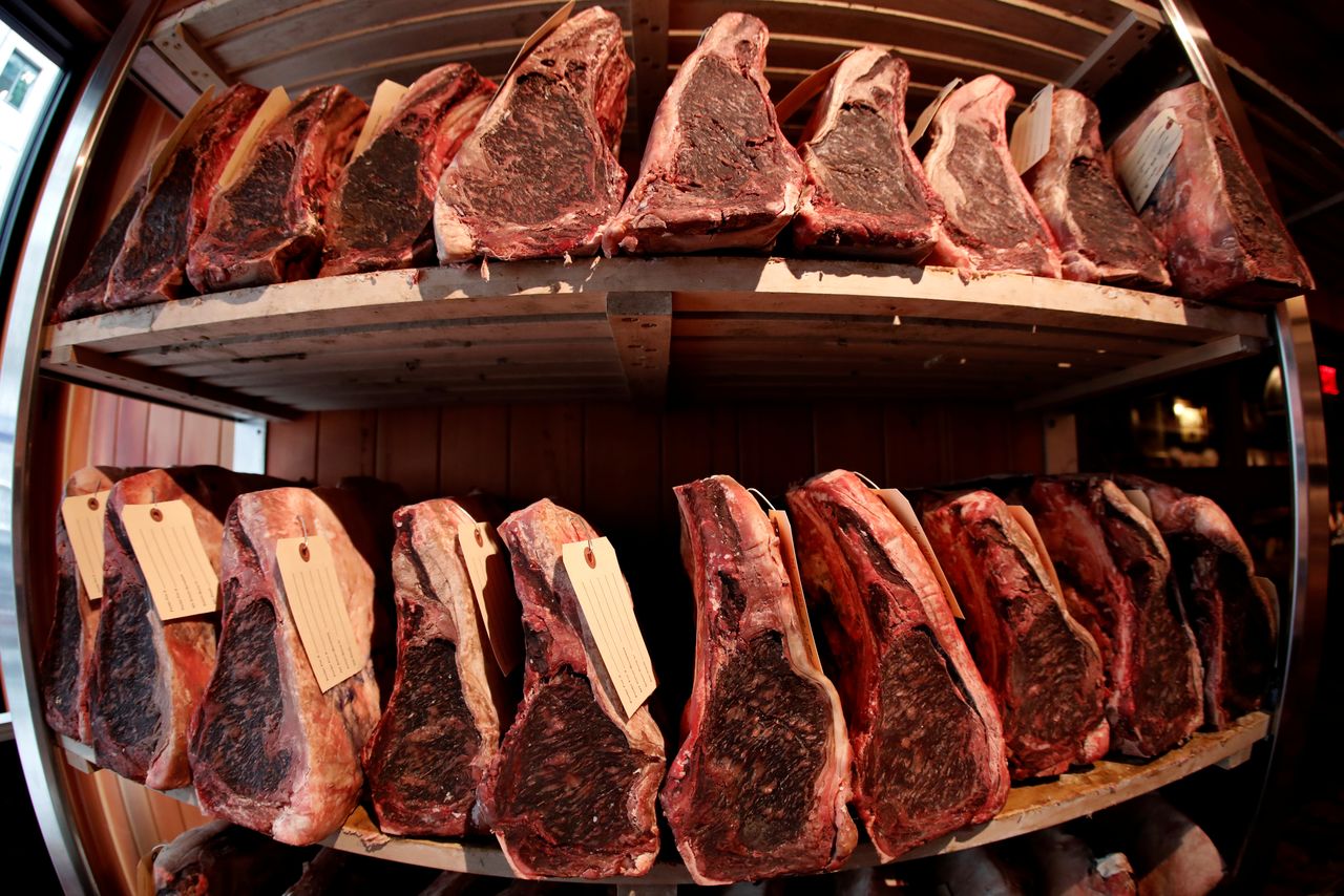FILE PHOTO: Cuts of USDA prime dry-aged beef are seen in the dry-aging room in the lobby of Gallaghers steakhouse in the Manhattan borough of New York City, U.S., July 27, 2017. REUTERS/Mike Segar