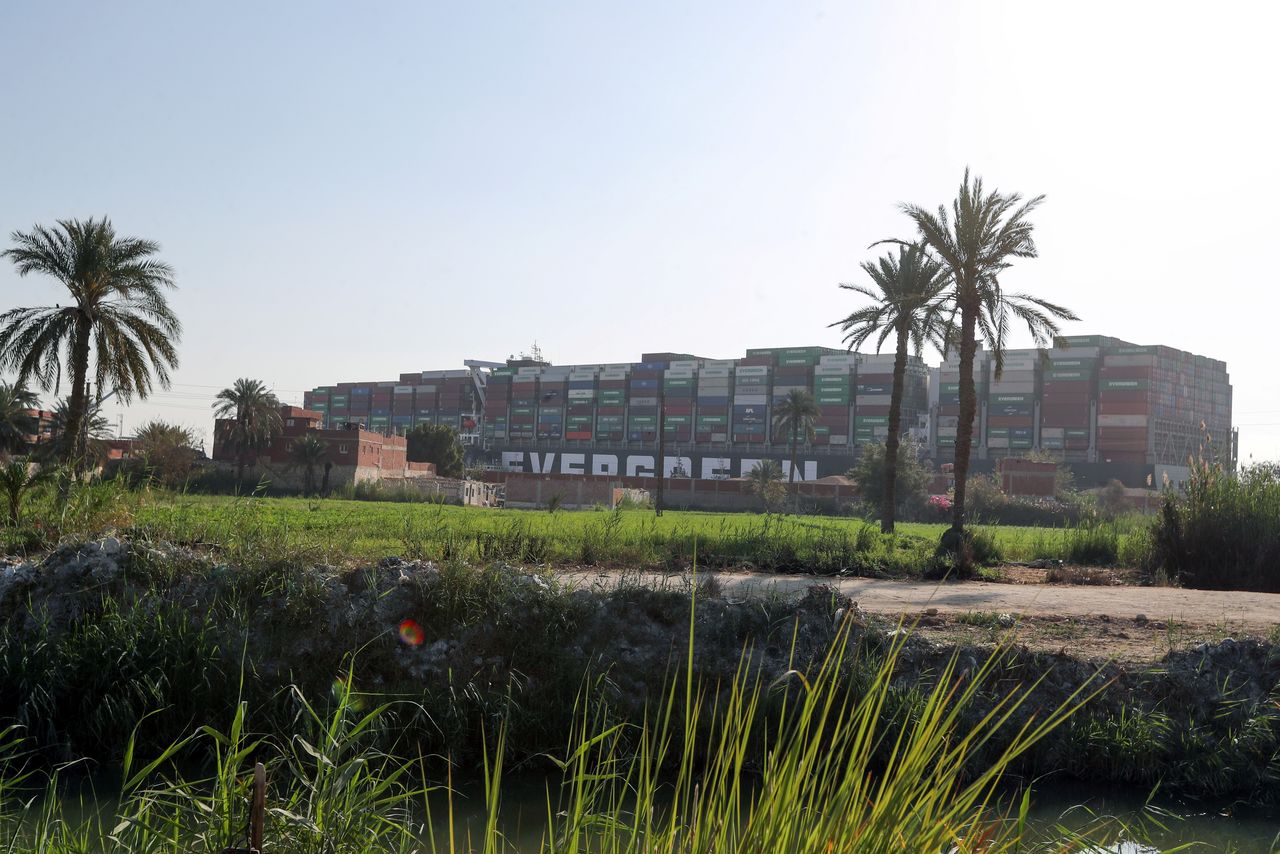 Stranded container ship Ever Given, one of the world’s largest container ships, is seen after it ran aground, in Suez Canal, Egypt March 26, 2021. REUTERS/Mohamed Abd El Ghany