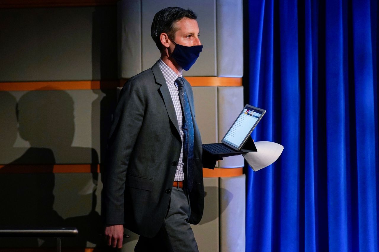 FILE PHOTO: U.S. State Department spokesman Ned Price arrives to speak at the State Department in Washington, U.S., March 31, 2021. Carolyn Kaster/Pool via REUTERS
