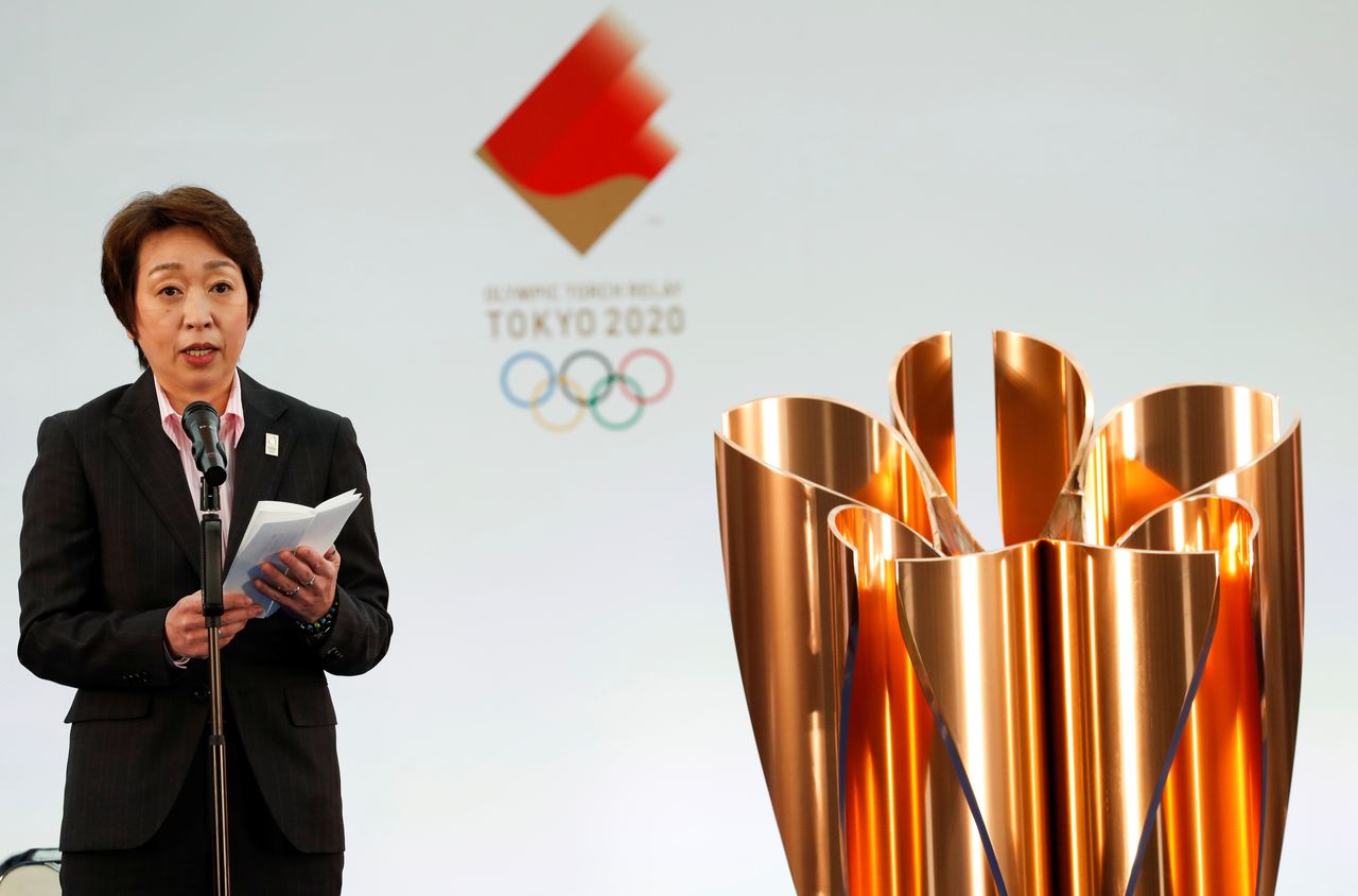 FILE PHOTO: Tokyo 2020 President Seiko Hashimoto delivers a speech during the Grand Start of the Olympic Torch Relay in Naraha, Fukushima prefecture, Japan March 25, 2021. REUTERS/Kim Kyung-Hoon/Pool