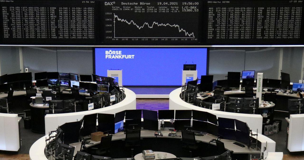 FILE PHOTO: The German share price index DAX graph is pictured at the stock exchange in Frankfurt, Germany, April 19, 2021. REUTERS/Staff