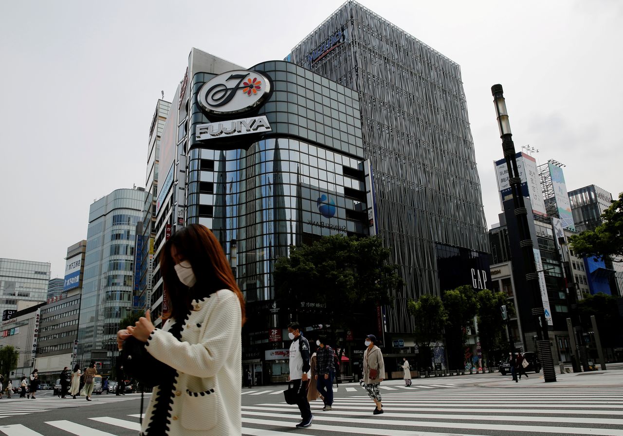 Pedestrians wearing protective face masks make their way at a shopping district, which is less crowded than usual on the first day of the country's third state of emergency, amid the coronavirus disease (COVID-19) outbreak, in Tokyo, Japan, April 25, 2021. REUTERS/Kim Kyung-Hoon
