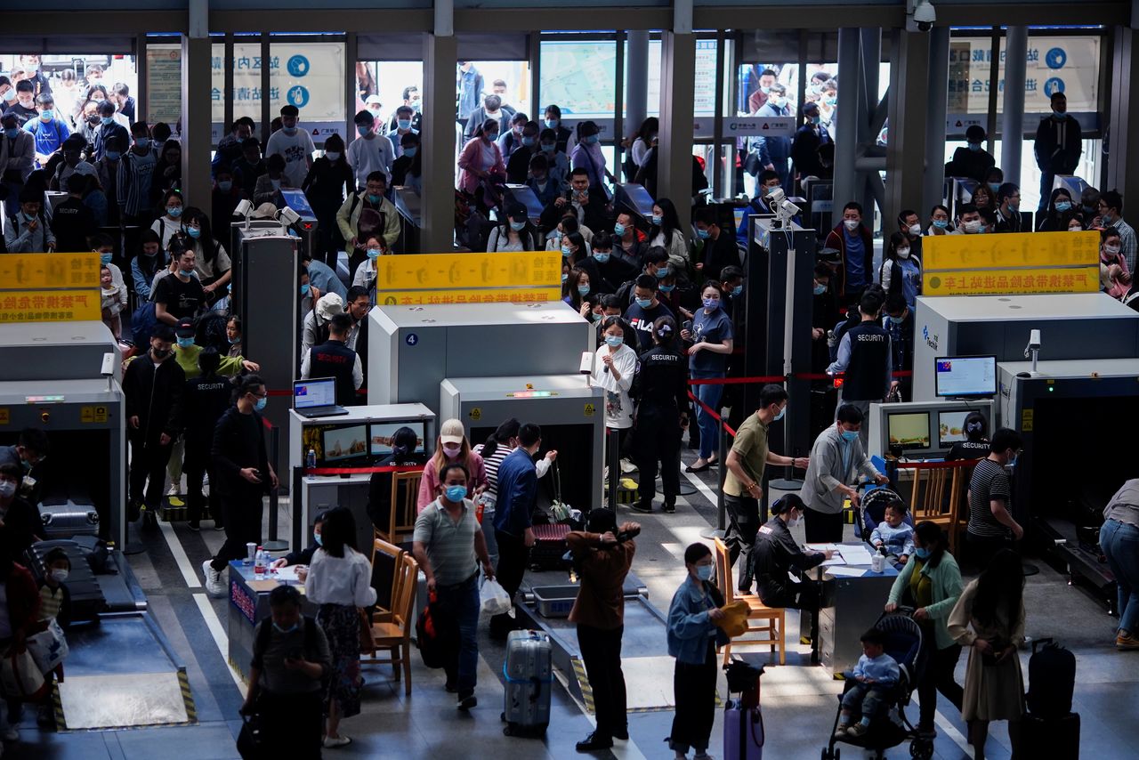 People wearing masks are seen at Shanghai railway station in Shanghai, ahead of the 5-day Labor Day holidays, in China April 30, 2021. REUTERS/Aly Song