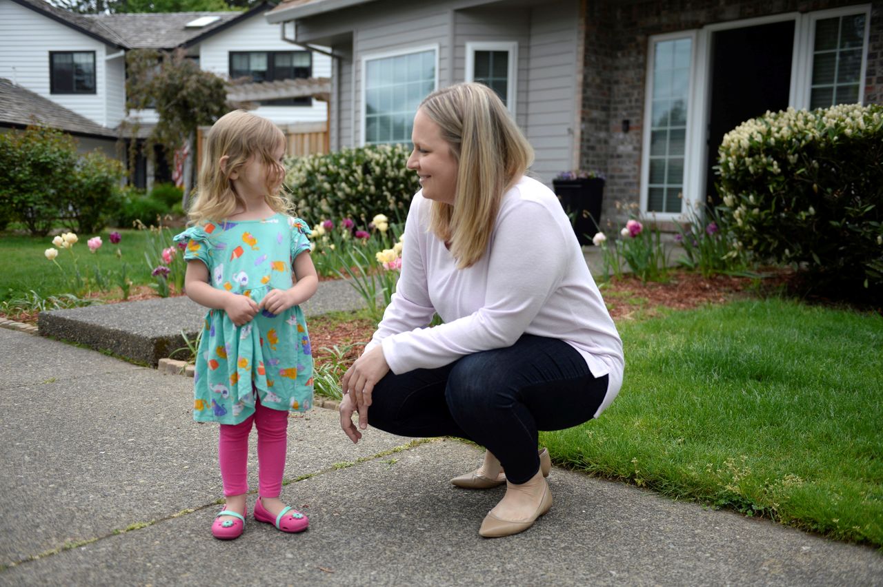 Mother of two, Wendy Niculescu, poses for a photo with her daughter Eleanor in Tualatin, Oregon, U.S., May 1, 2021. REUTERS/Amanda Lucier