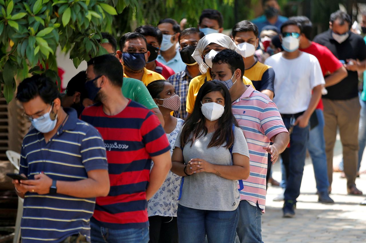 FILE PHOTO: People wearing protective face masks wait to receive a dose of COVISHIELD, a coronavirus disease (COVID-19) vaccine manufactured by Serum Institute of India, outside a vaccination centre in Ahmedabad, India, May 1, 2021. REUTERS/Amit Dave