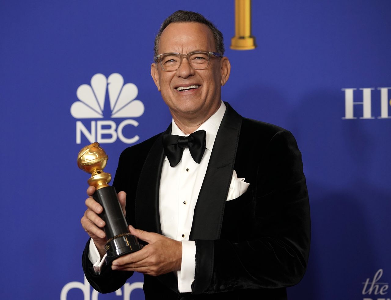 Tom Hanks poses backstage with his Cecil B. DeMille award, Beverly Hills, California, January 5, 2020 - REUTERS/Mike Blake