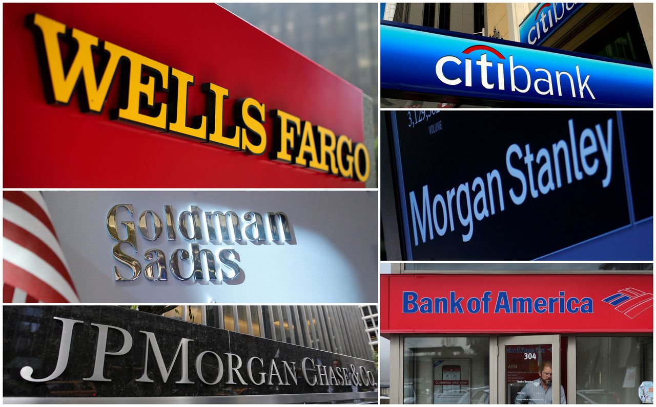 FILE PHOTO: A combination file photo shows Wells Fargo, Citigbank, Morgan Stanley, JPMorgan Chase, Bank of America, JPMorgan, and Goldman Sachs from Reuters archive. REUTERS/File Photos