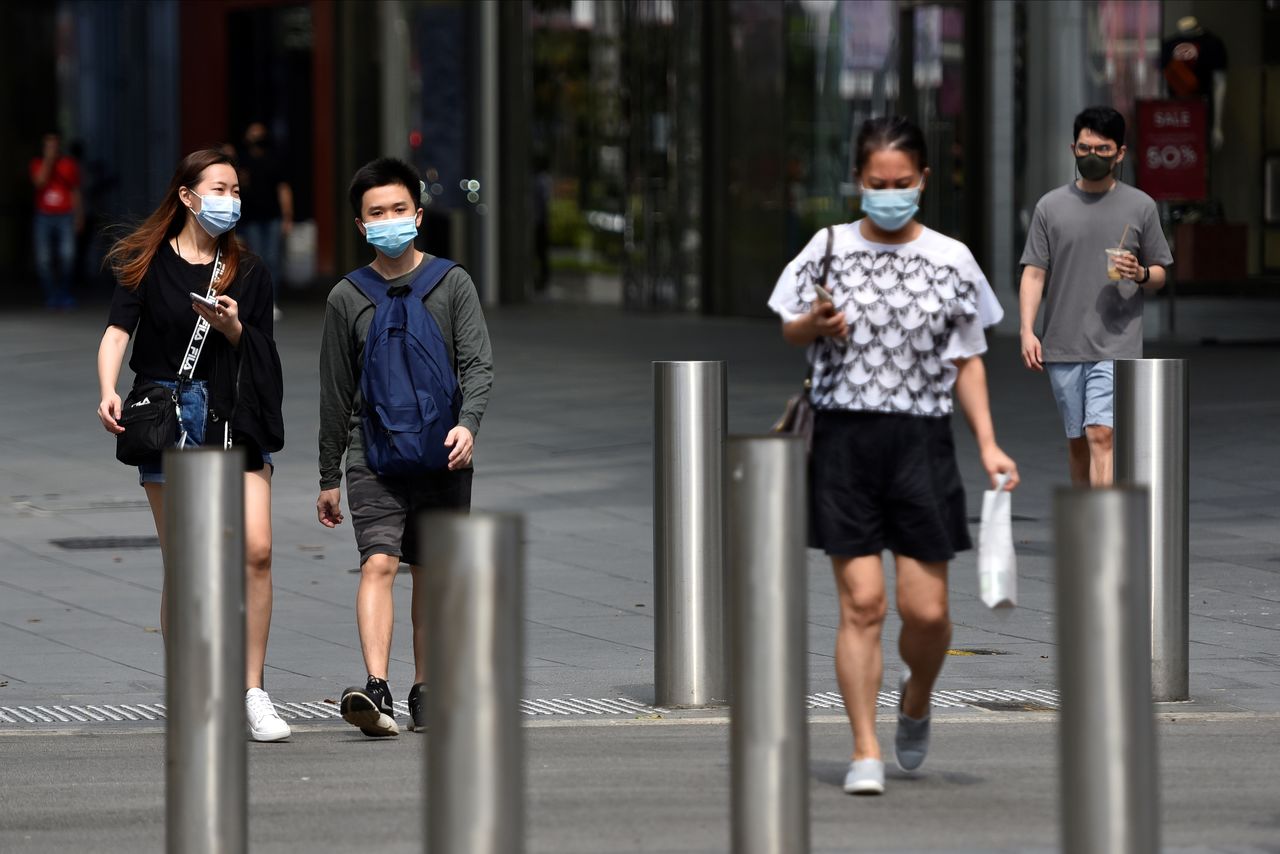 FILE PHOTO: People wearing face masks cross a road amid the coronavirus disease (COVID-19) outbreak in Singapore May 20, 2021. REUTERS/Caroline Chia