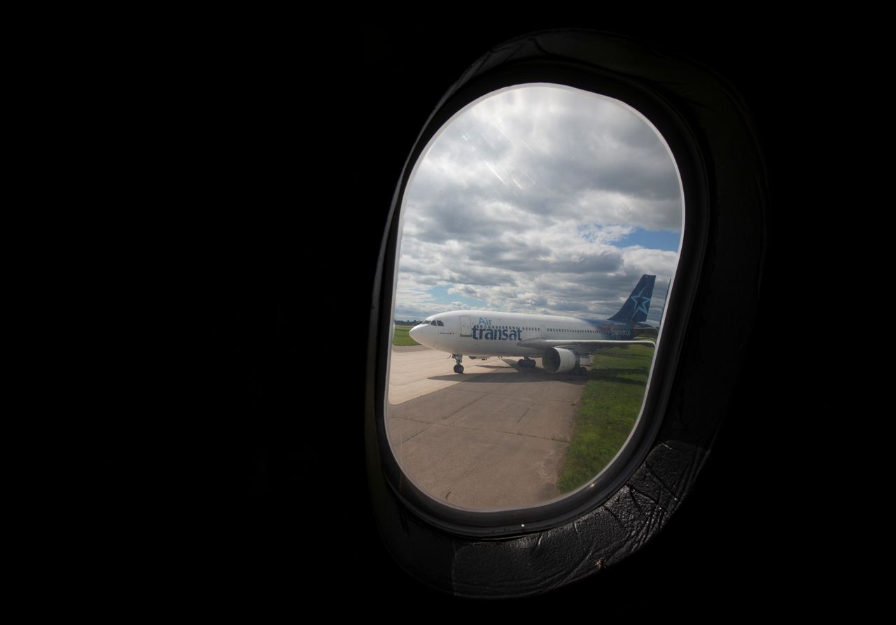 FILE PHOTO: An Airbus A310 plane is seen through an aircraft window at recycling company Aerocycle in Mirabel, Quebec, Canada August 25, 2020. Picture taken August 25, 2020. REUTERS/Christinne Muschi