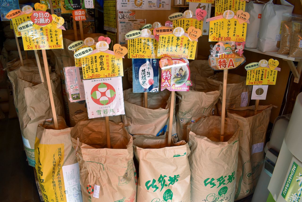 "We thought there could be no harm in trying it out," said Moeko Suzuki, who helps her father run the store, standing amid sacks of rice. "The number of young people has really increased."