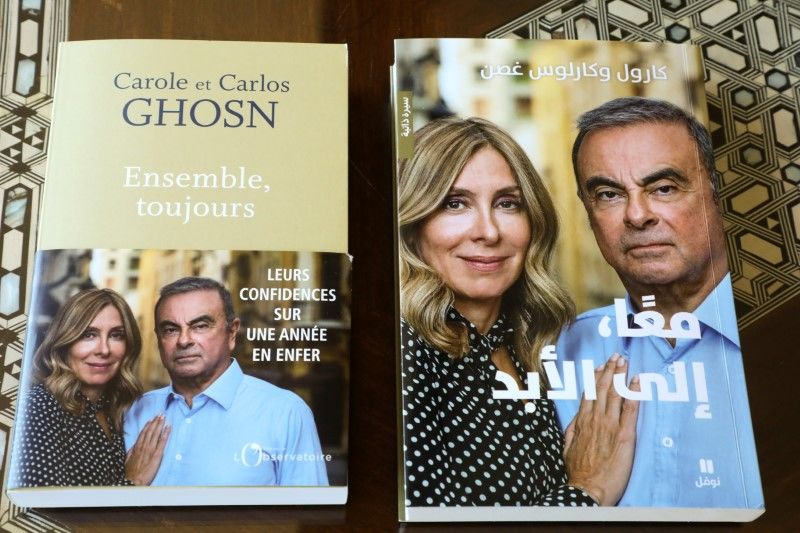 The latest book for Former Nissan Chairman Carlos Ghosn, that he co-authored with his wife Carole 'Ensemble toujours', is seen in Beirut, Lebanon June 14, 2021. REUTERS/Mohamed Azakir